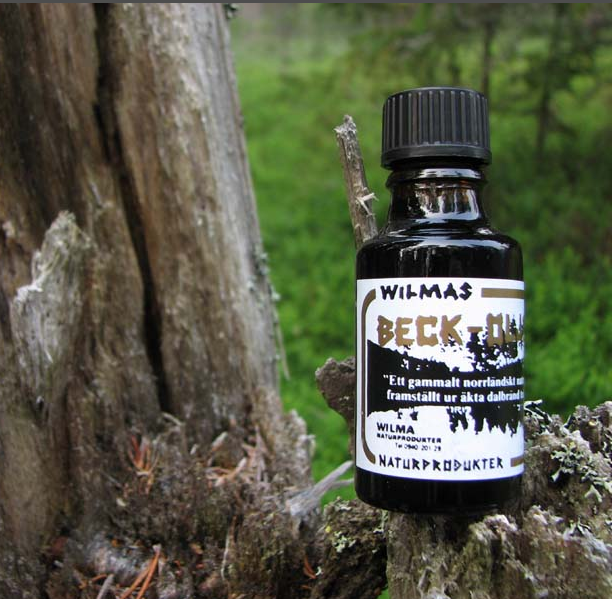 Beck Olja – the ‘forest perfume’ of Lapland – originated from traditional pine tar production and had many uses. With an aromatic pine tar smell Beck Olja evokes feelings of being in the northern Scandinavian forest. For hunting, Wild boar are attracted to the scent and it can therefore be used to lure them. The 25ml bottles last for a long time as only a small amount is needed, and the oil can be diluted. Contains all natural ingredients – pine tar.