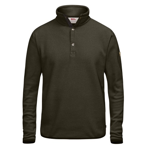 Warm and comfortable fleece sweater made from recycled polyester. Dyed with SpinDye technology that radically reduces the amount of water, energy and chemicals used. A convenient and warm mid layer, perfect under a shell jacket on autumn and winter adventures. The collar is high and the front opening is half-length with press buttons. Reinforcements in G-1000 Eco on the elbows and inside of the front opening. Elasticated edging around the sleeve cuffs.